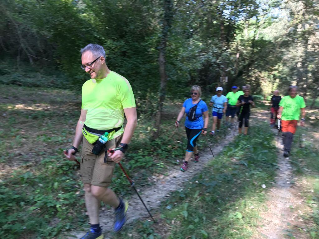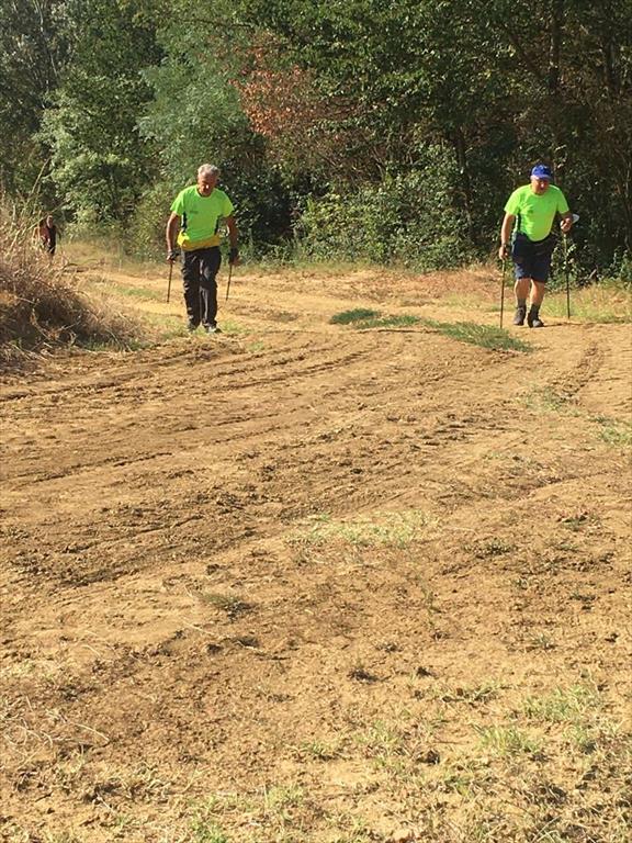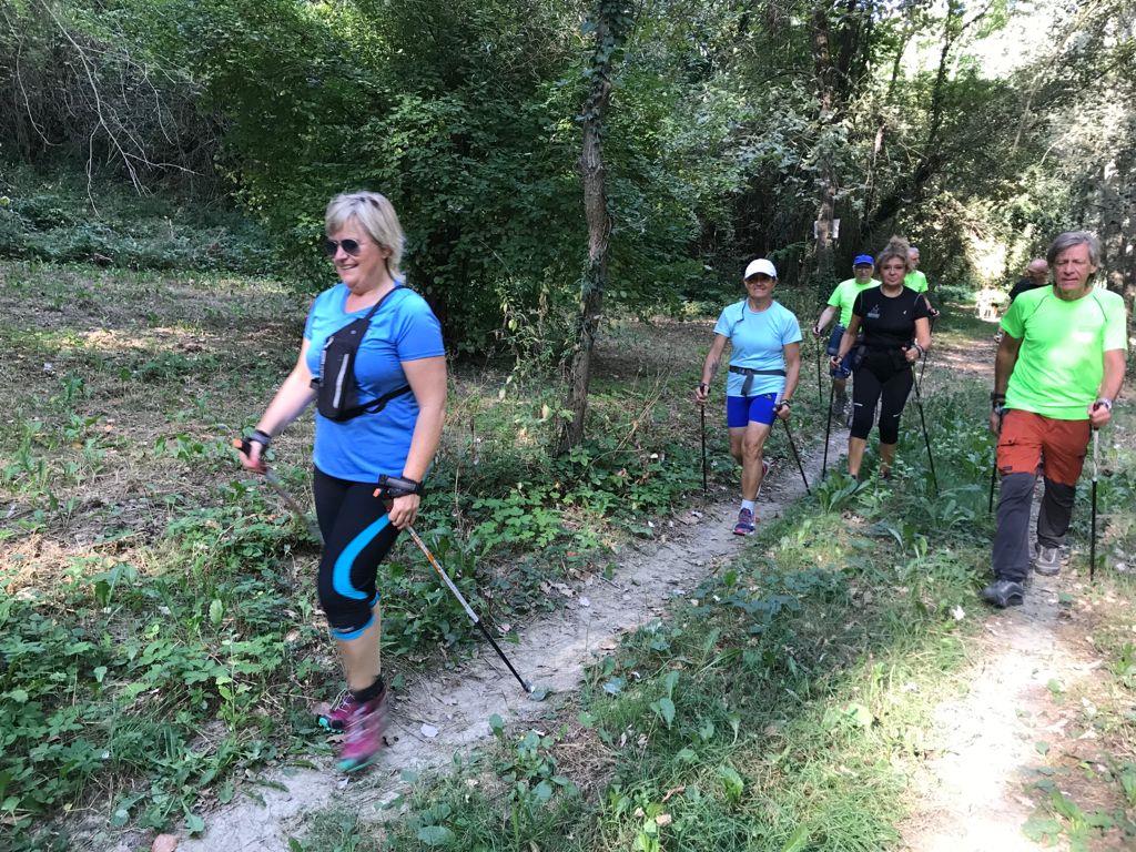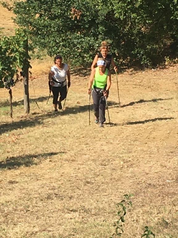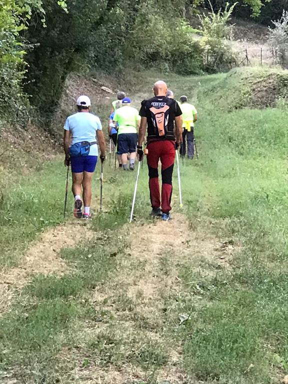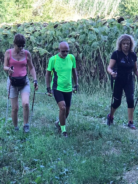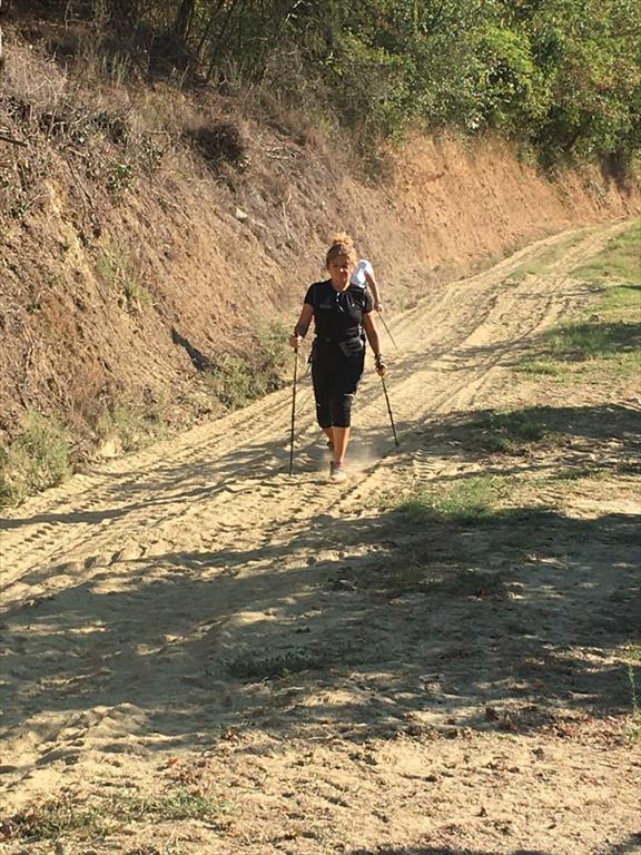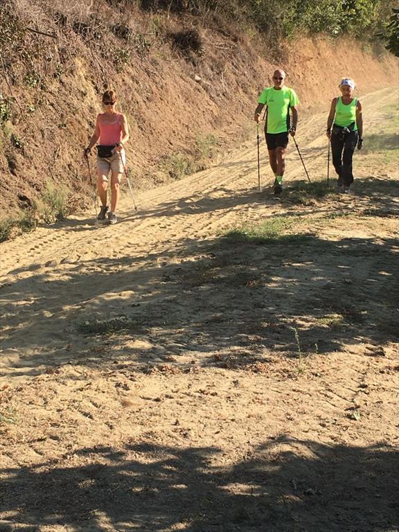 Cammina di allenamento in tecnica Nordic Walking attraverso regione Sernella