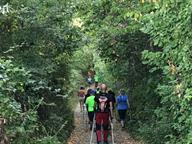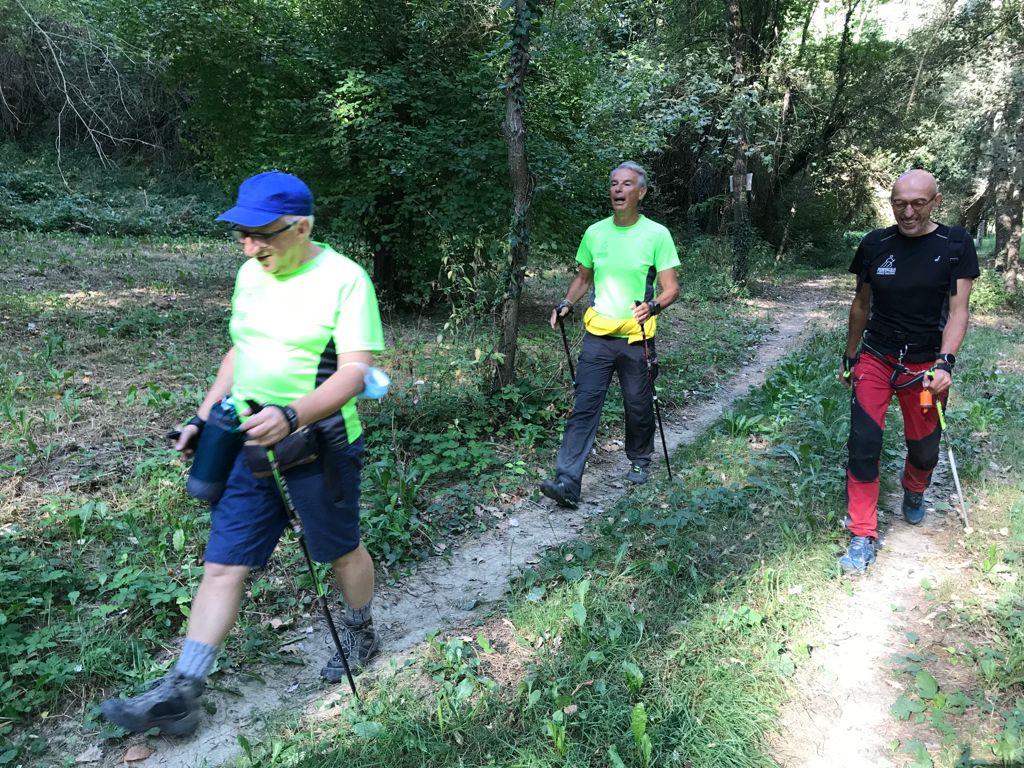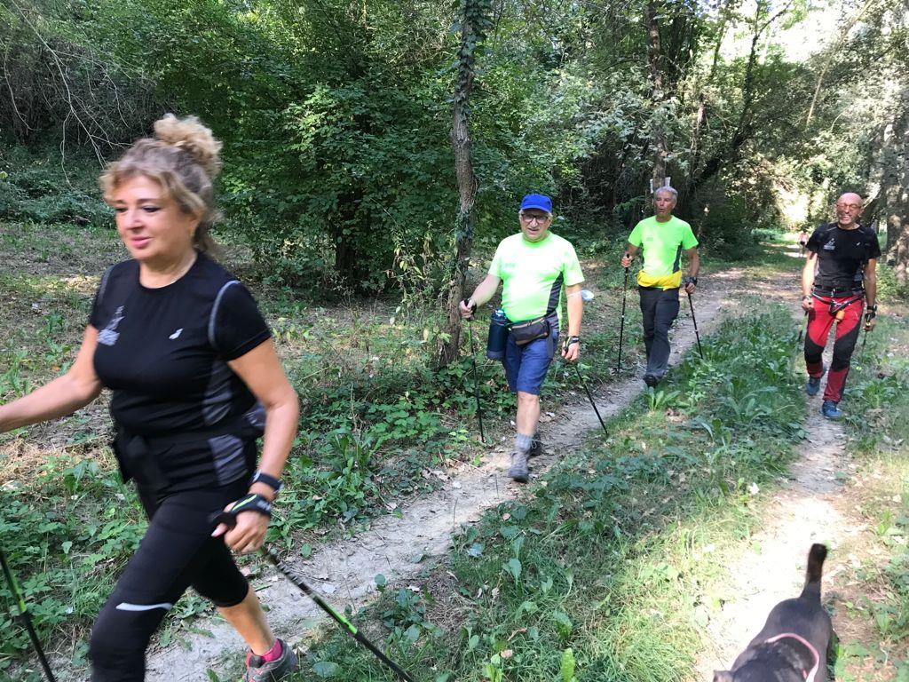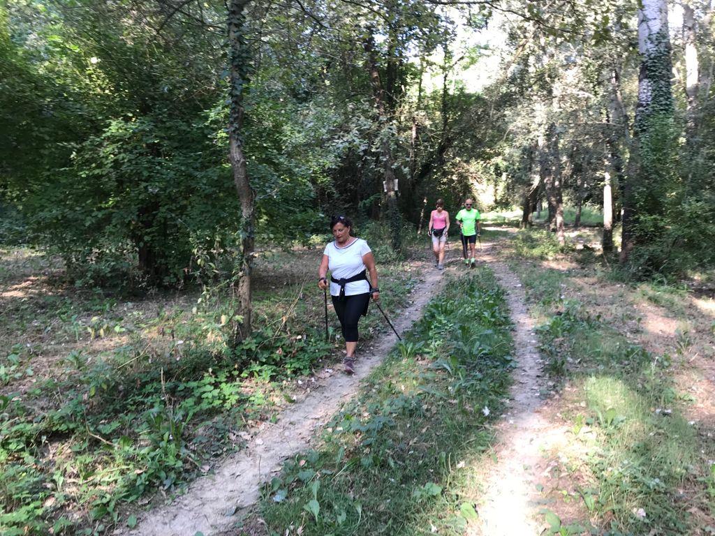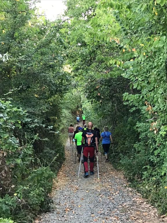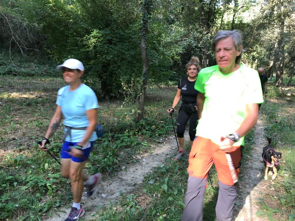 Cammina di allenamento in tecnica Nordic Walking attraverso regione Sernella